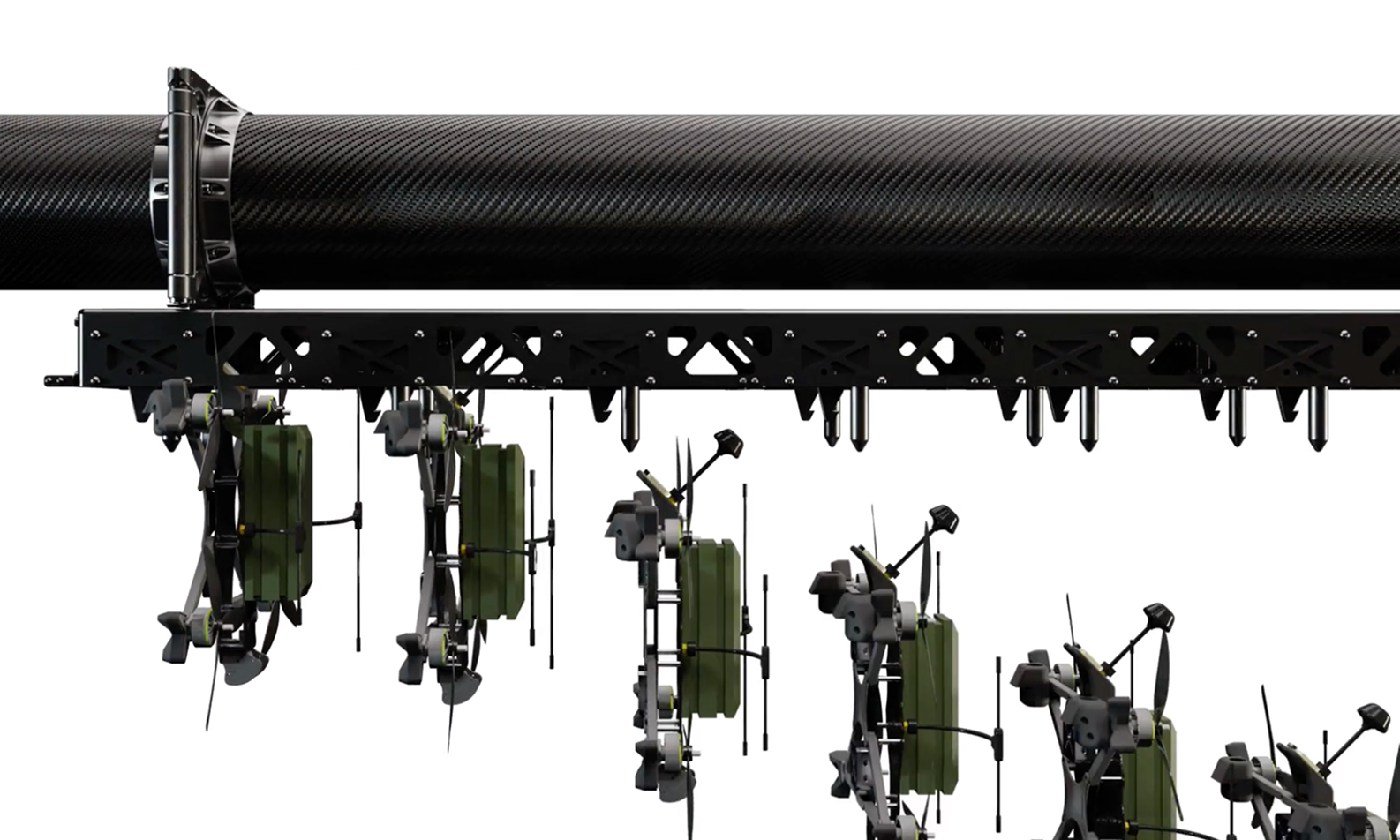 The Talon DT‑300’s payload rig enables seamless, remotely controlled deployment of up to sixteen air-launched drones. Each drone can be released individually with precise timing and accuracy, allowing operators to extend surveillance coverage, conduct coordinated missions, or respond dynamically to evolving operational requirements, all while maintaining flight stability and efficiency.