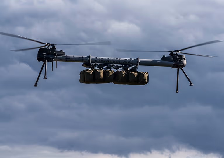 The Talon DT-300 can carry a maximum payload of 45 kg (99 lbs), enabling a wide variety of mission roles from logistics and resupply to acting as a mothership for smaller drones.